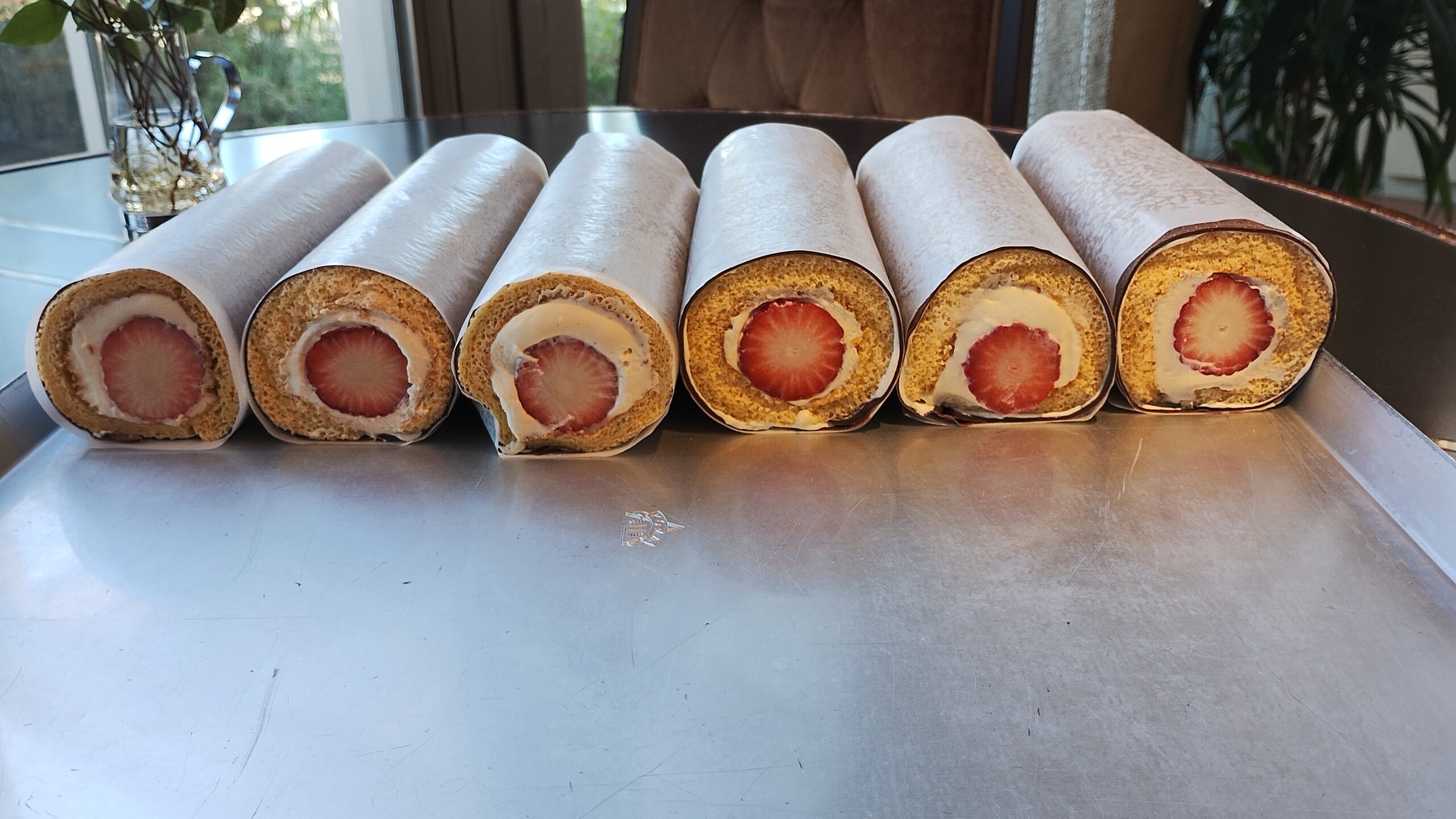 「恵方巻き苺ロール」もこのあとお時間に合わせてお作りしていきます!