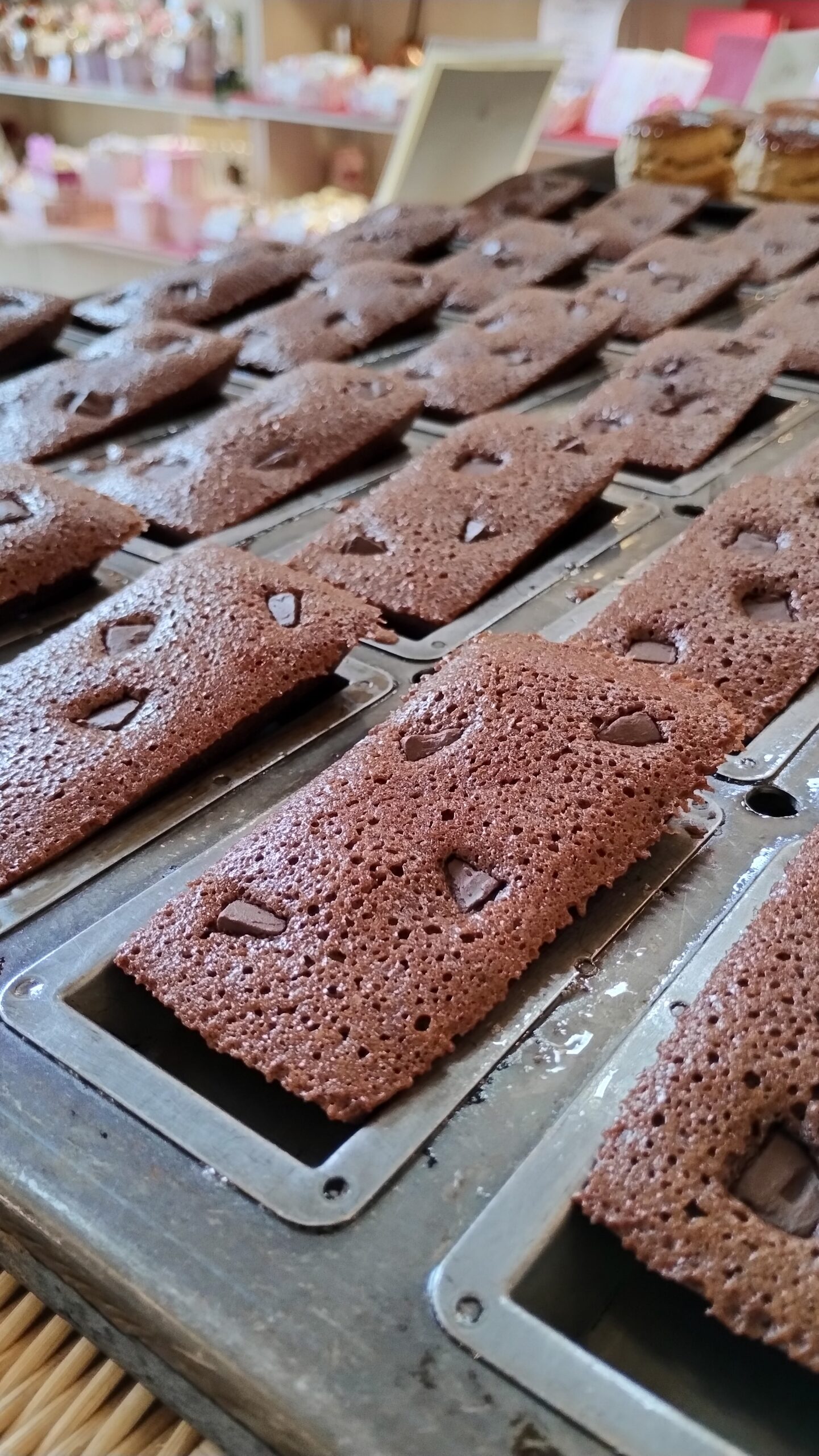 定番のフィナンシェ型、“金の延べ棒”を模した長方形の台形で焼きます。