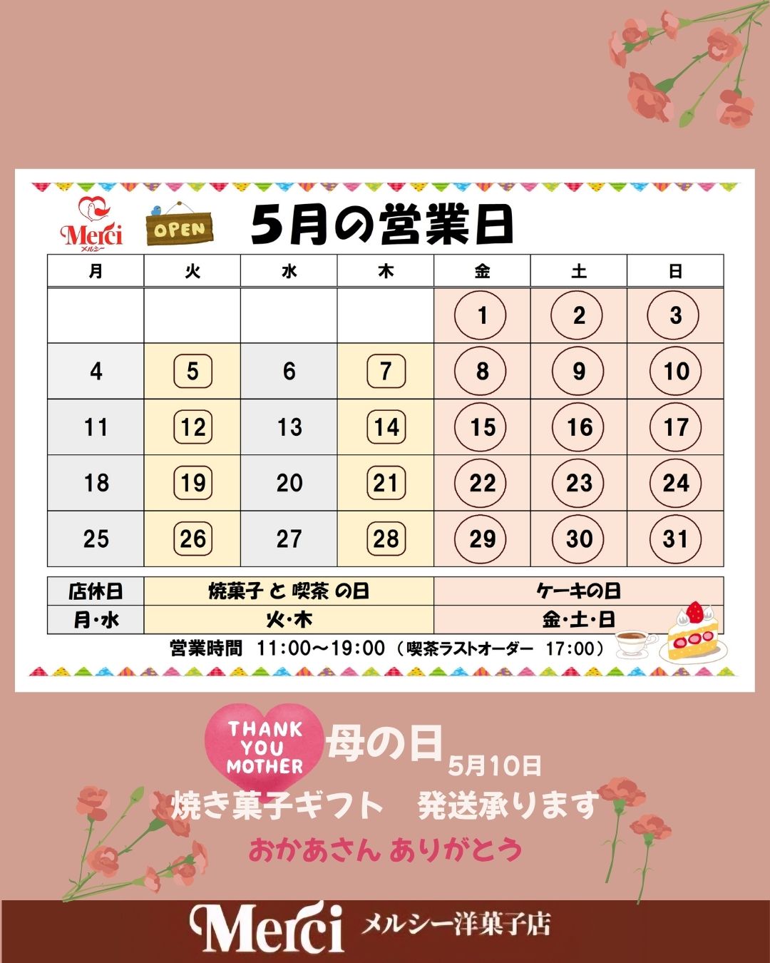 いつもメルシー洋菓子店をご愛顧いただき誠にありがとうございます。